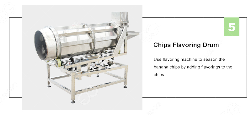 Plantain chips cutting machine----elevator----blanching machine ---- dewatering machine----elevator----frying machine---- deoiling machine----elevator----flavoring machine----elevator----packing machine